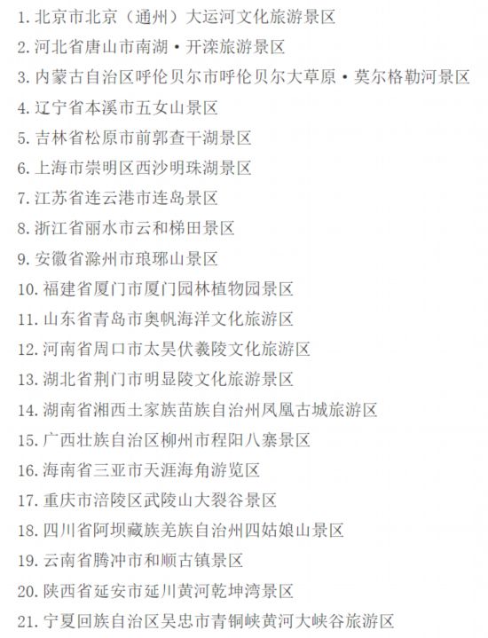 天辰娱乐:国家5A级旅游景区新增21家